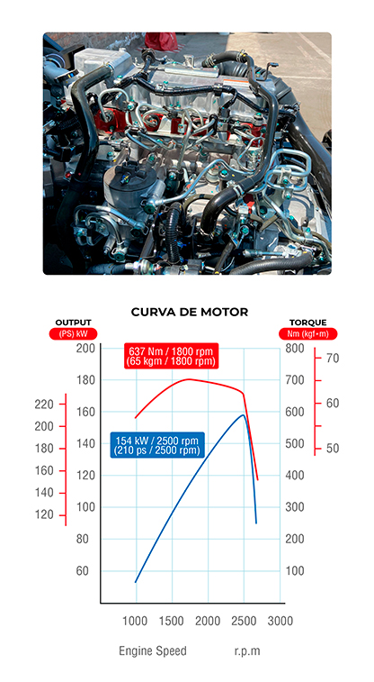 Además de caracterizarse por su durabilidad, rendimiento y un óptimo consumo de combustible, el motor del chasis FC BUS Euro 5 de HINO cuenta con: